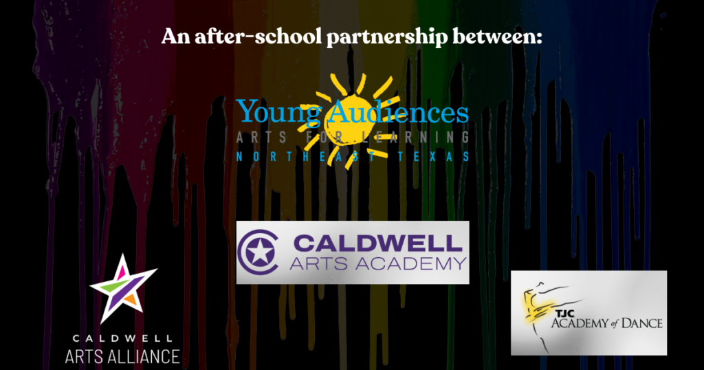The Tyler Arts Project (TAP) – Encore, a collaboration between Young Audiences of Northeast Texas, Caldwell Arts Alliance, TJC Academy of Dance, and Caldwell Arts Academy, is dedicated to expanding after-school opportunities for K-8th grade students in and around Tyler. This yearlong program offers dance, music, theatre, and visual arts, led by a team of expert teaching artists and educators. TAP provides artistic development in these areas through studio-style classes and offers academic help to students as well! By fostering creativity and community connection, TAP empowers students to thrive as engaged citizens, transforming the future of their community. TAP’s main goal is to provide equitable access to arts education, promoting personal growth, creativity, and academic success.