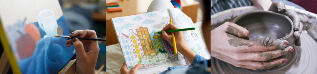 Classroom WorkshopStudents first study and draw the anatomy of a fish. Line, shape, color, and texture are explored. Students use their imagination in creating colorful “schools of fish” in mixed media.